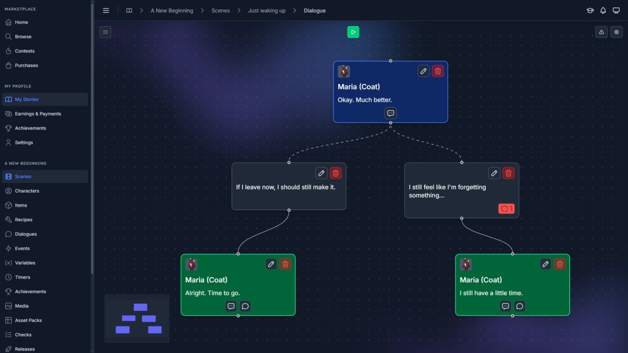 Build interactive stories with a visual workflow designed for writers and small teams.